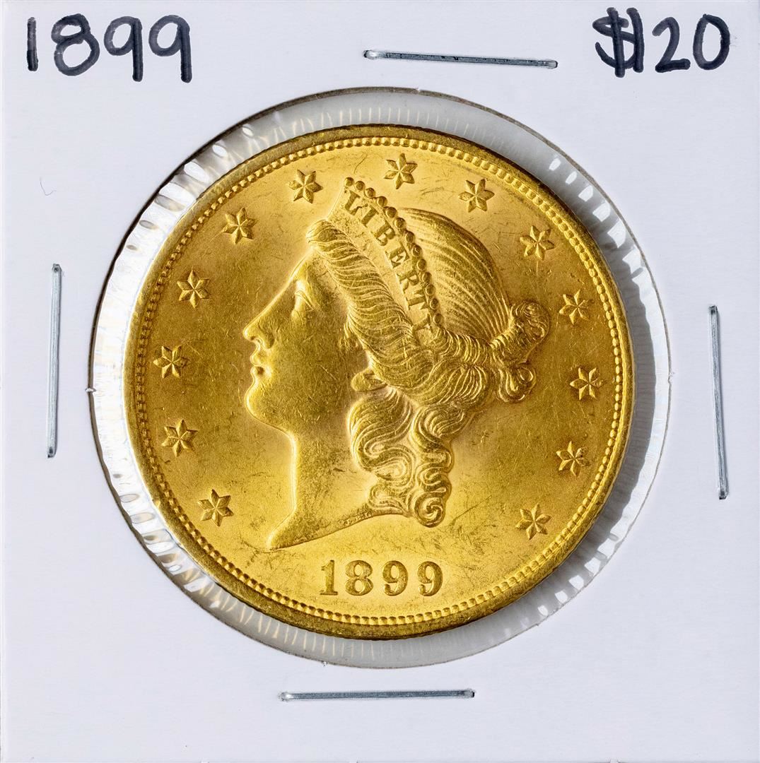One 1899 $20 Liberty Head Double Eagle Gold Coin.
