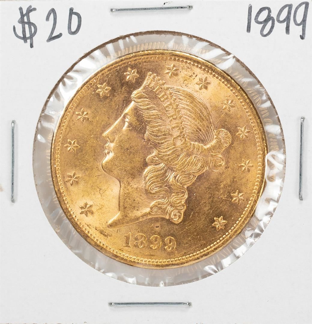 One 1899 $20 Liberty Head Double Eagle Gold Coin.