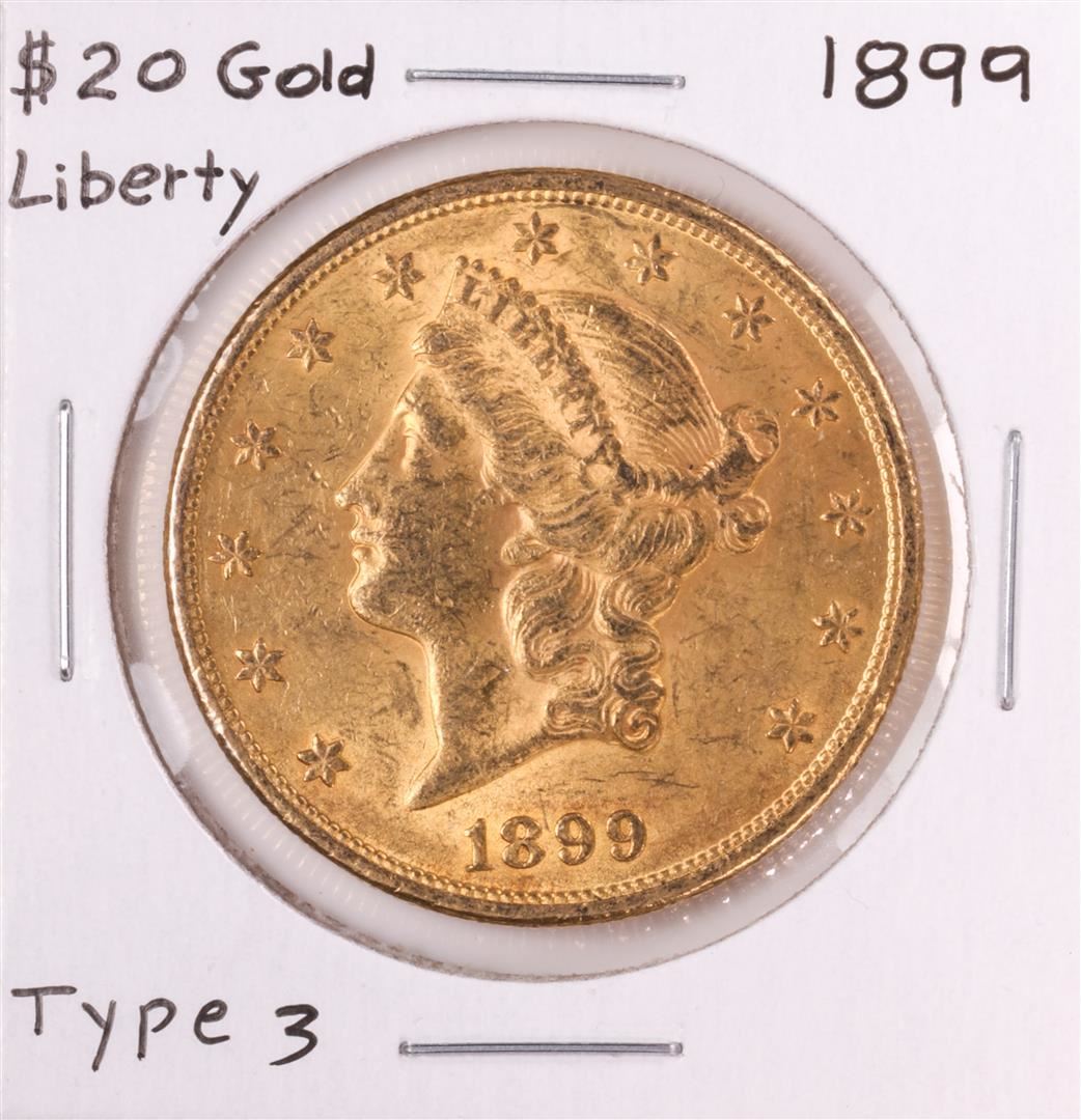 One 1899 $20 Liberty Head Double Eagle Gold Coin.