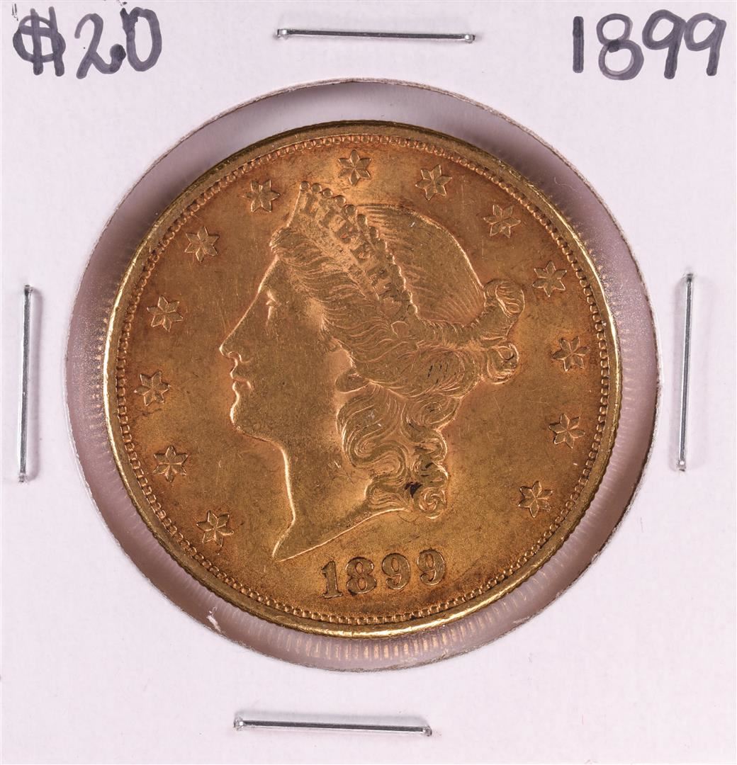 One 1899 $20 Liberty Head Double Eagle Gold Coin.