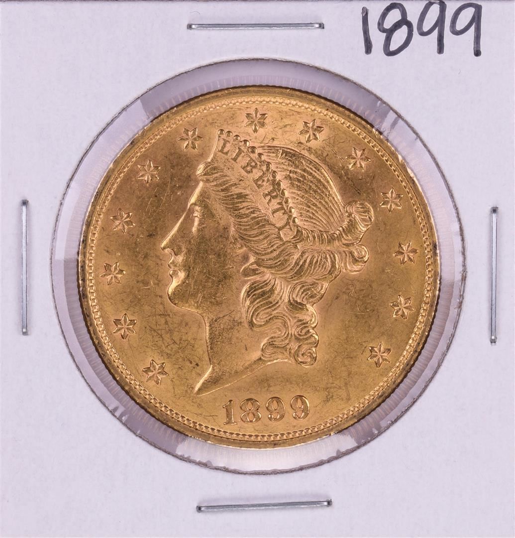One 1899 $20 Liberty Head Double Eagle Gold Coin.