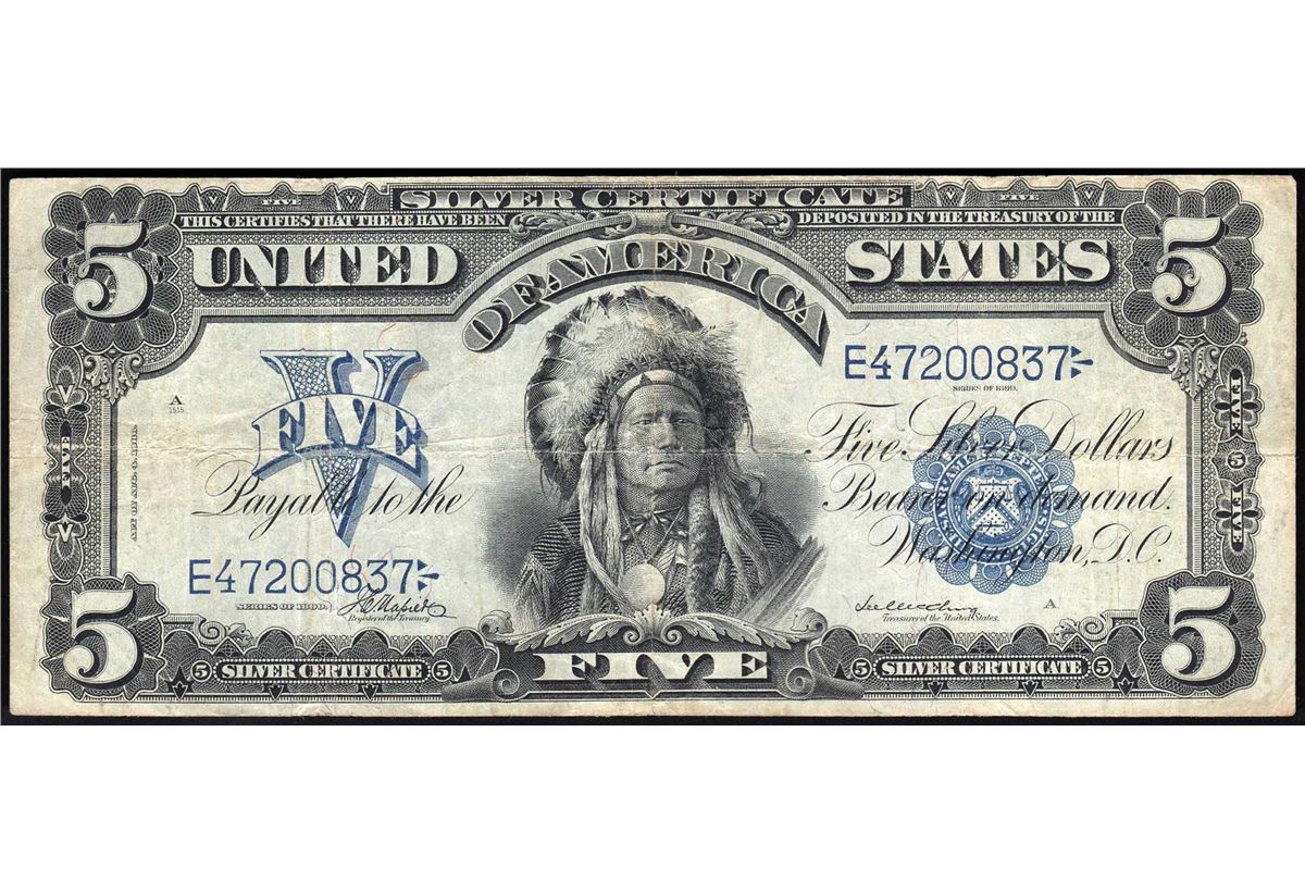 One 1899 $5 Indian Chief Silver Certificate Bank Note.