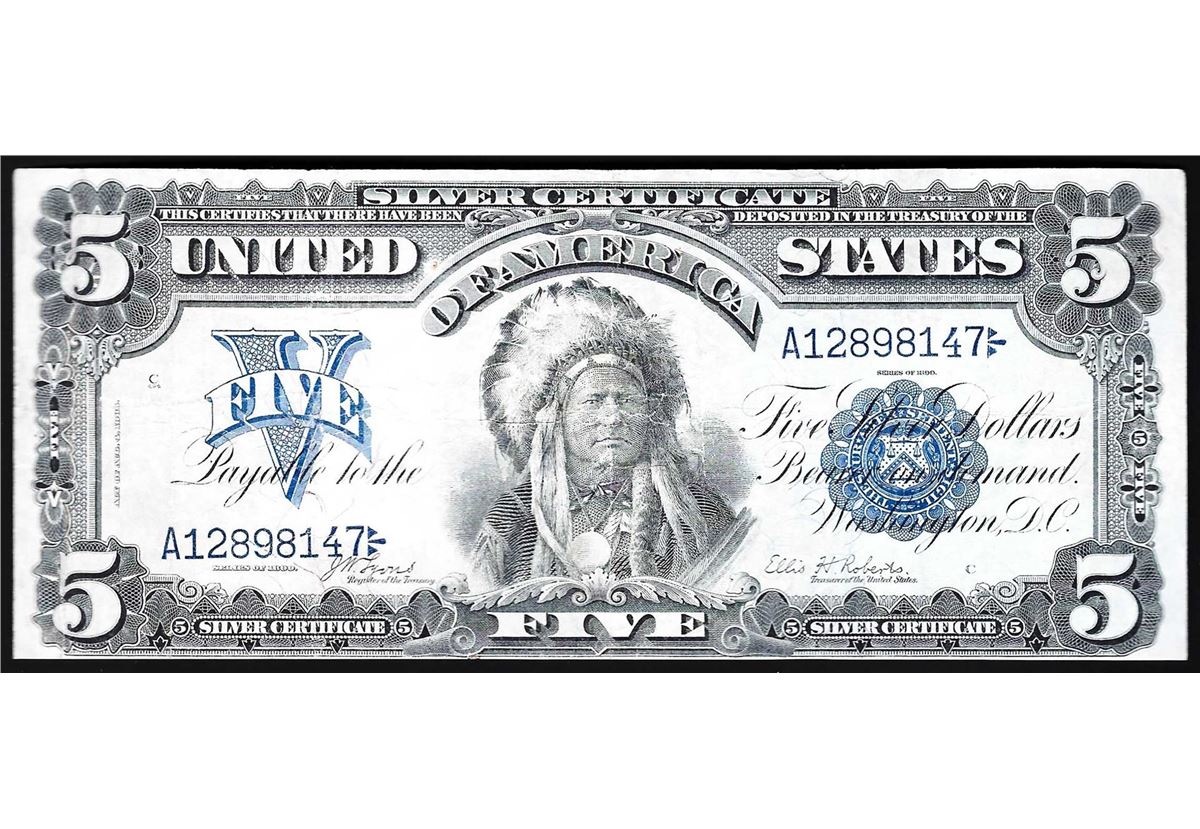 One 1899 $5 Indian Chief Silver Certificate Bank Note.