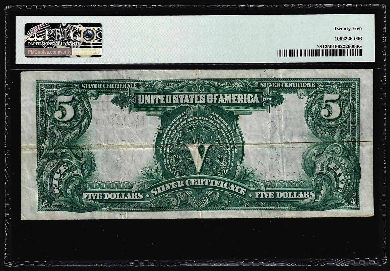 One 1899 $5 Indian Chief Silver Certificate Note Fr.281 PMG Very Fine 25. PMG Certified.