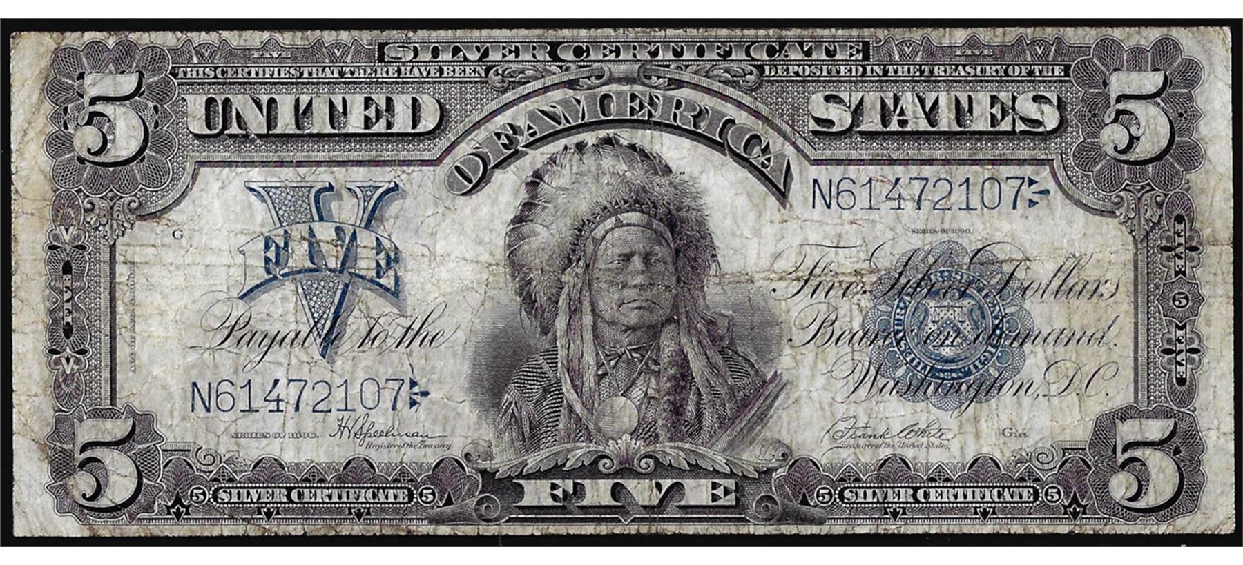 One 1899 $5 Indian Chief Silver Certificate Note.