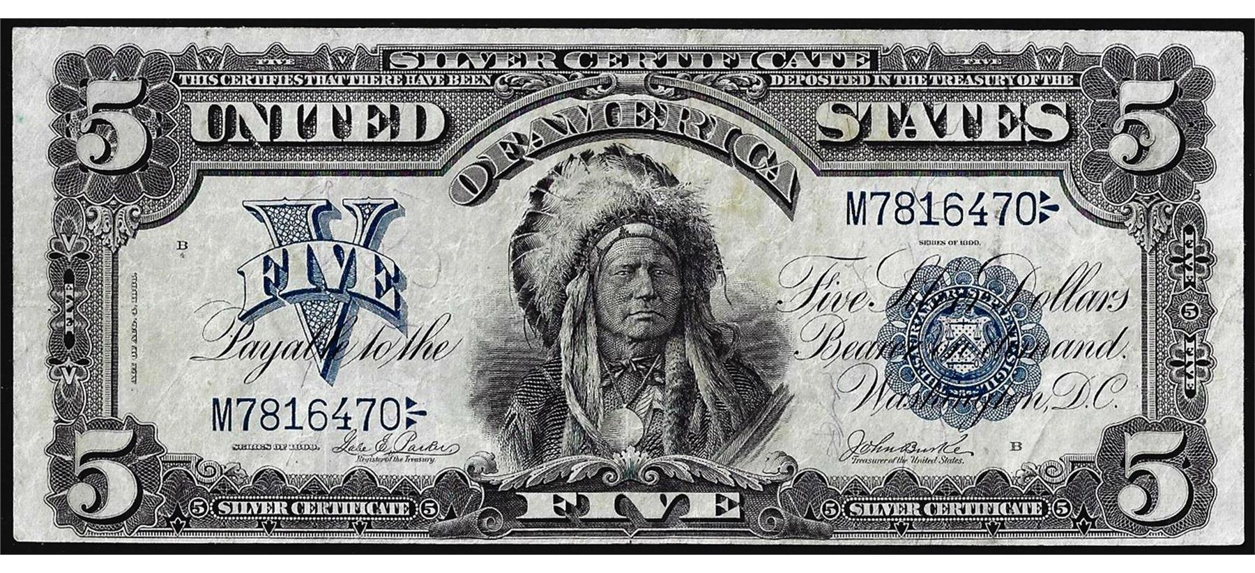One 1899 $5 Indian Chief Silver Certificate Note.