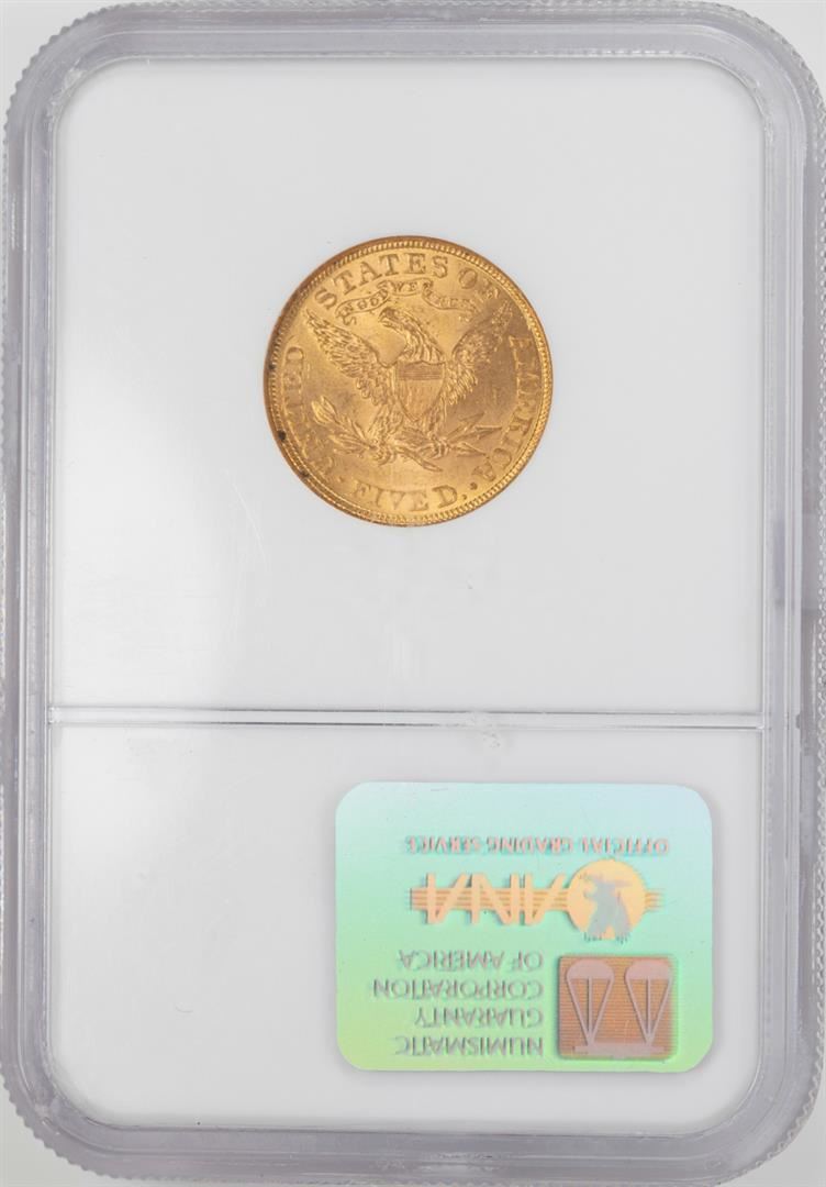 One 1899 $5 Liberty Head Half Eagle Gold Coin NGC MS63. NGC Certified.