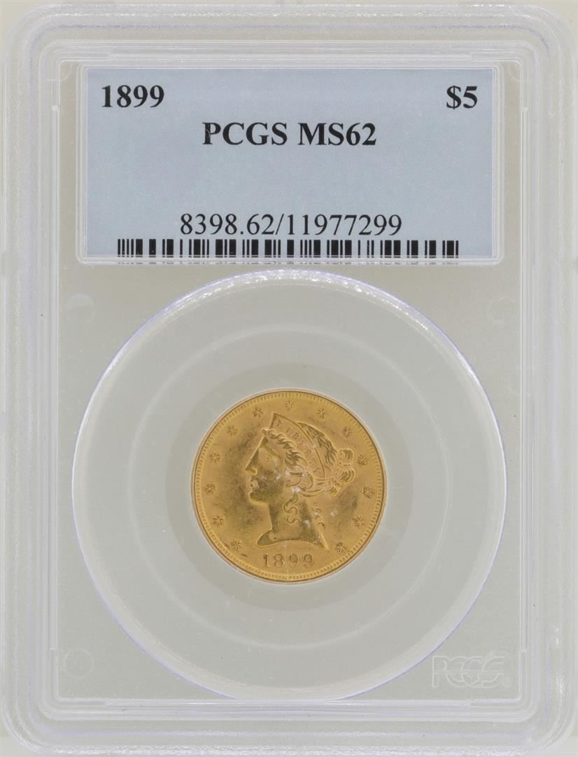 One 1899 $5 Liberty Head Half Eagle Gold Coin PCGS MS62. PCGS Graded.