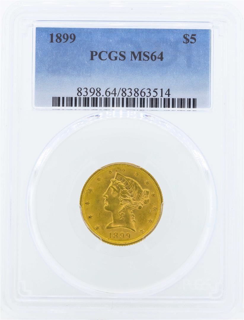 One 1899 $5 Liberty Head Half Eagle Gold Coin PCGS MS64. PCGS Graded.