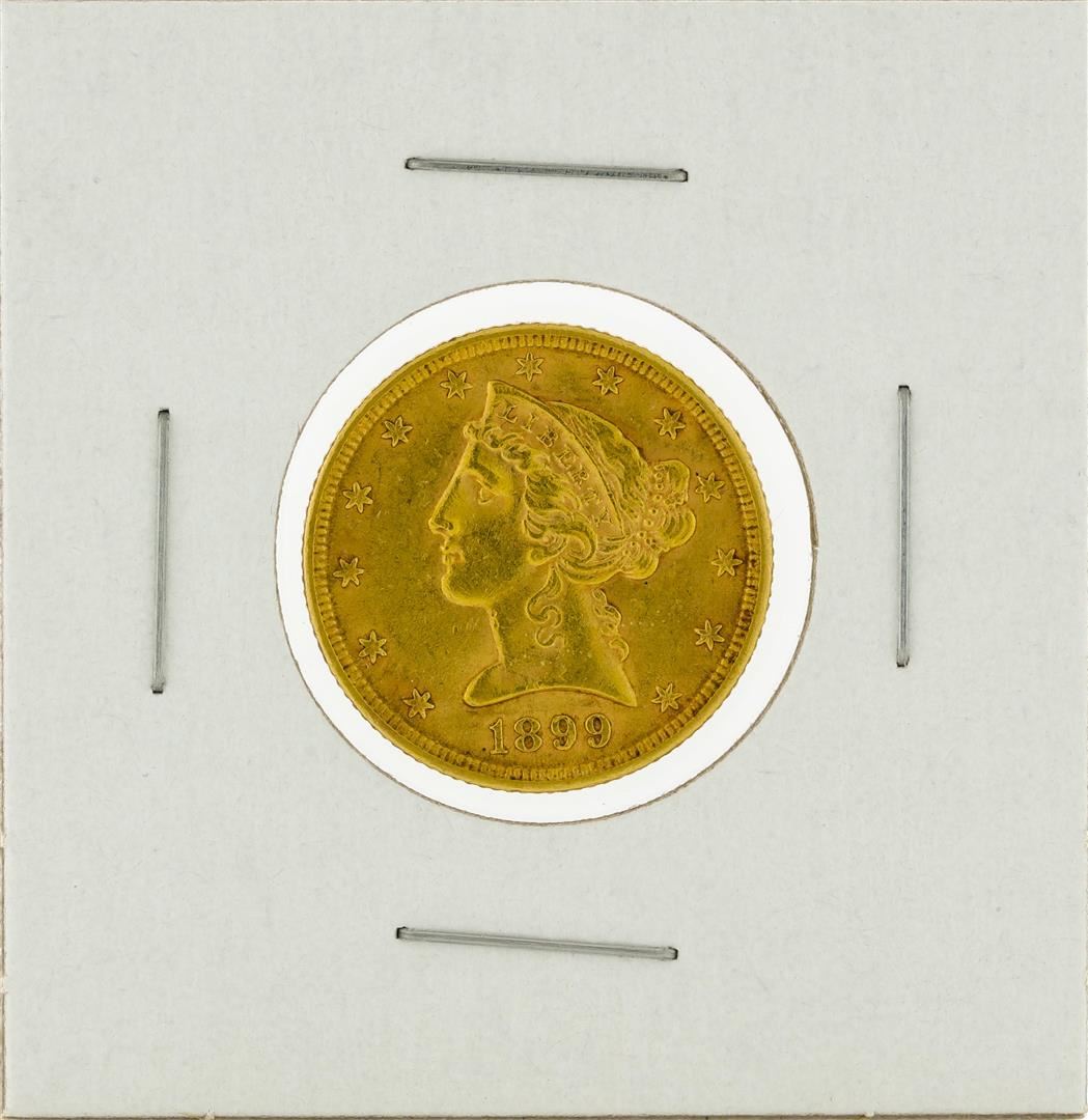 One 1899 $5 Liberty Head Half Eagle Gold Coin.