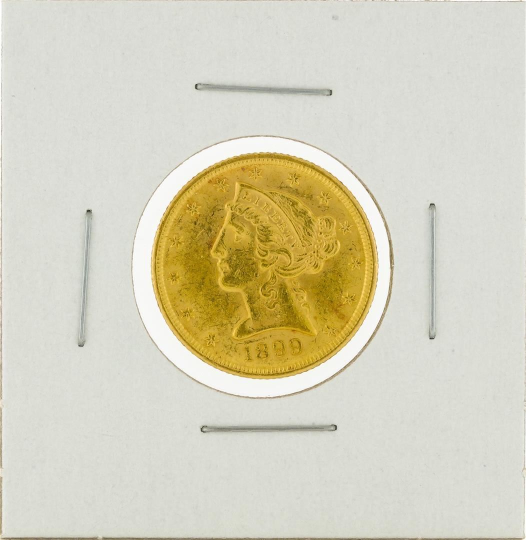 One 1899 $5 Liberty Head Half Eagle Gold Coin.