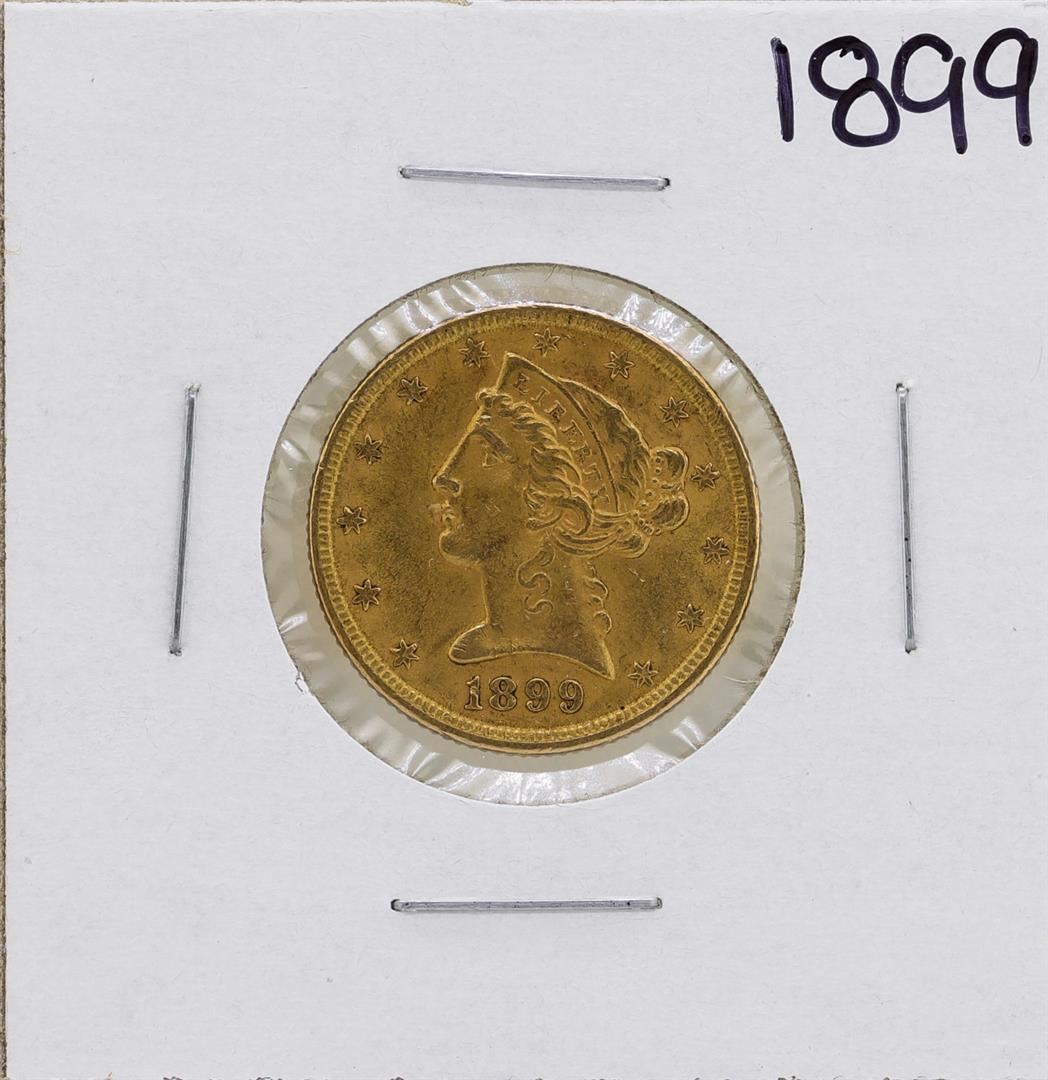 One 1899 $5 Liberty Head Half Eagle Gold Coin.