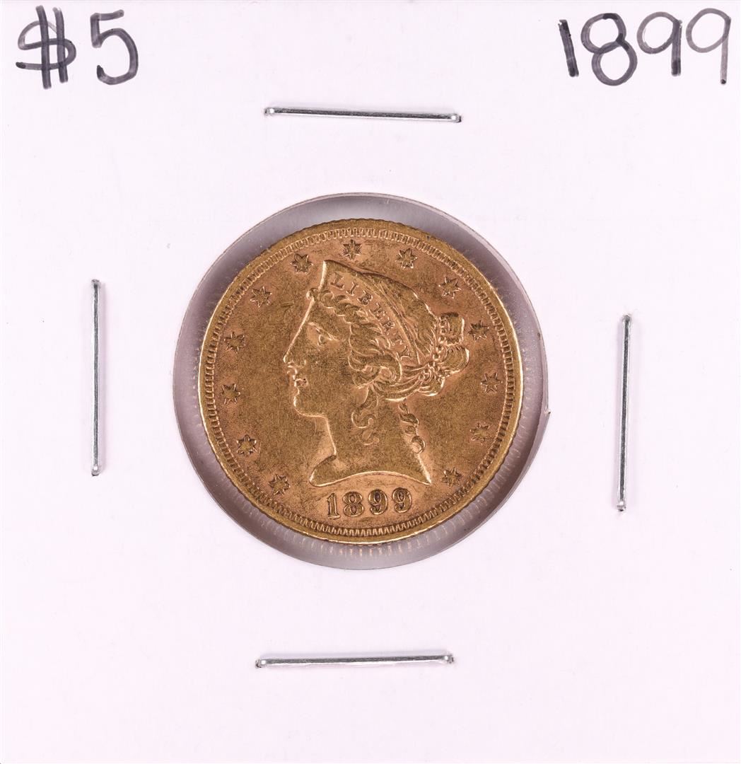 One 1899 $5 Liberty Head Half Eagle Gold Coin.