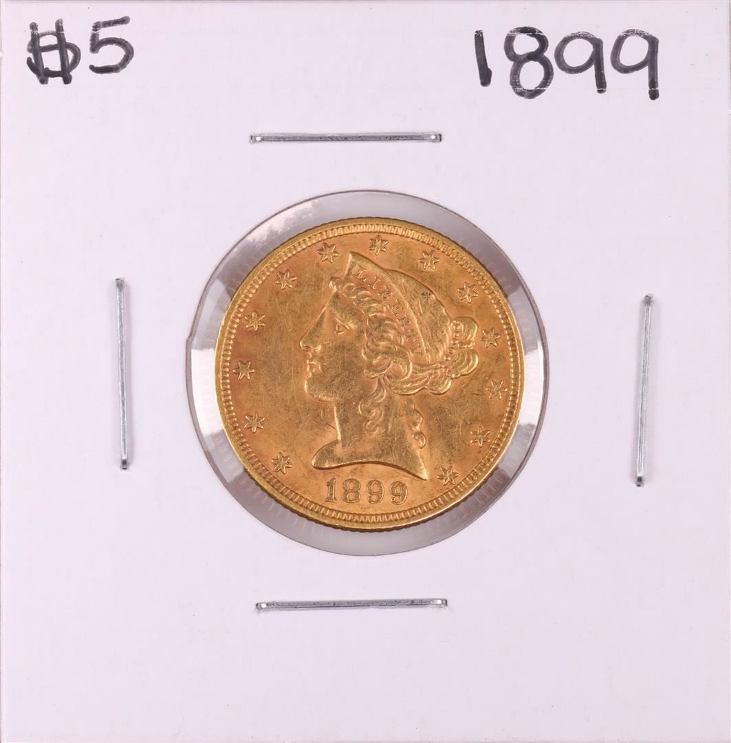 One 1899 $5 Liberty Head Half Eagle Gold Coin.