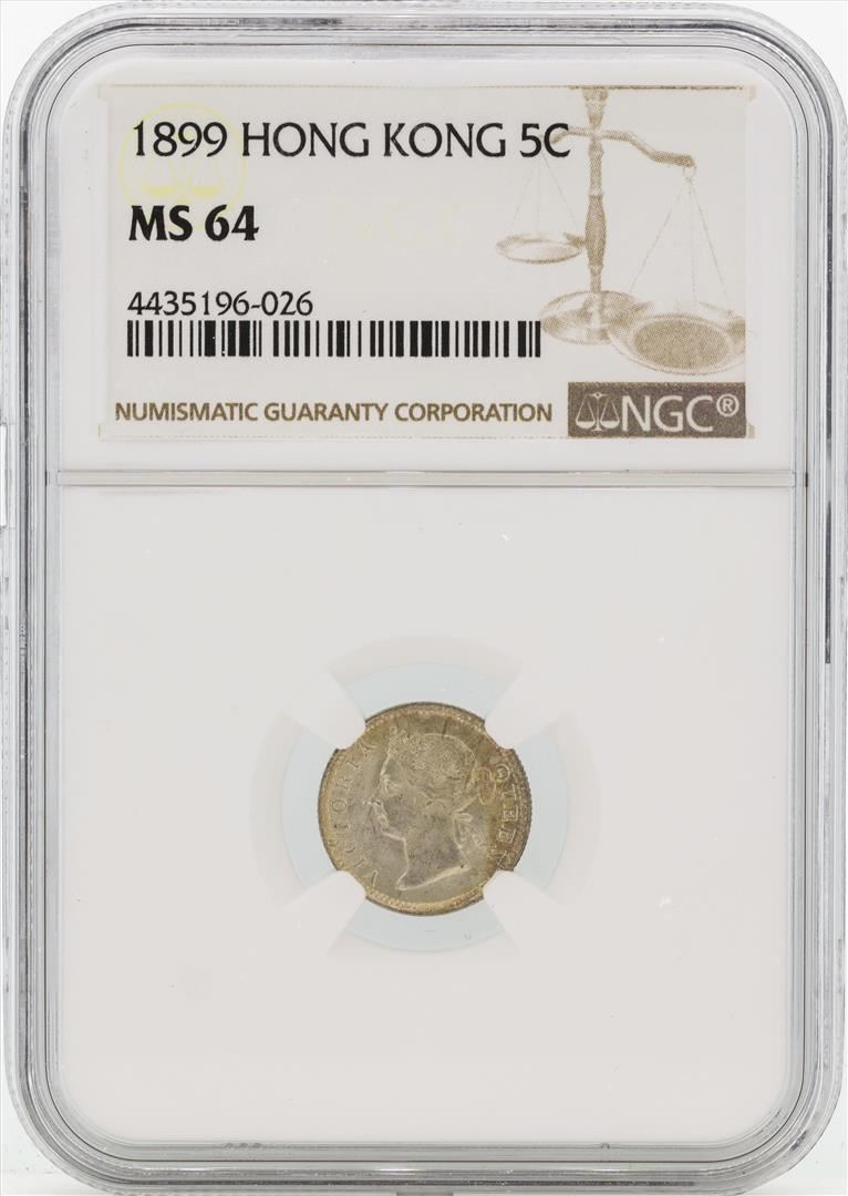 One 1899 Hong Kong 5 Cents Silver Coin NGC MS64. NGC Certified.