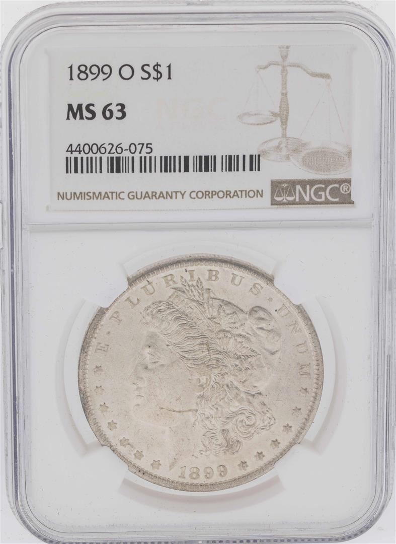 One 1899-O $1 Morgan Silver Dollar Coin NGC MS63. NGC Certified.