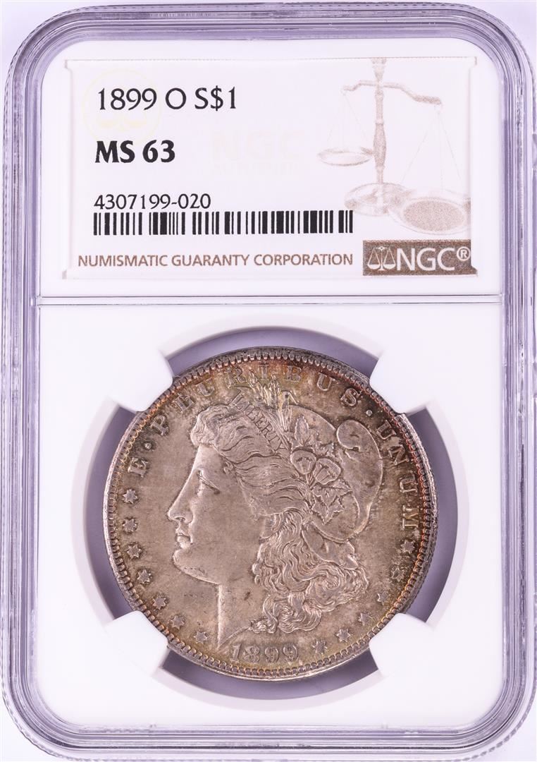One 1899-O $1 Morgan Silver Dollar Coin NGC MS63. NGC Certified.