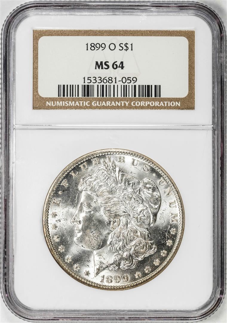 One 1899-O $1 Morgan Silver Dollar Coin NGC MS64. NGC Certified.