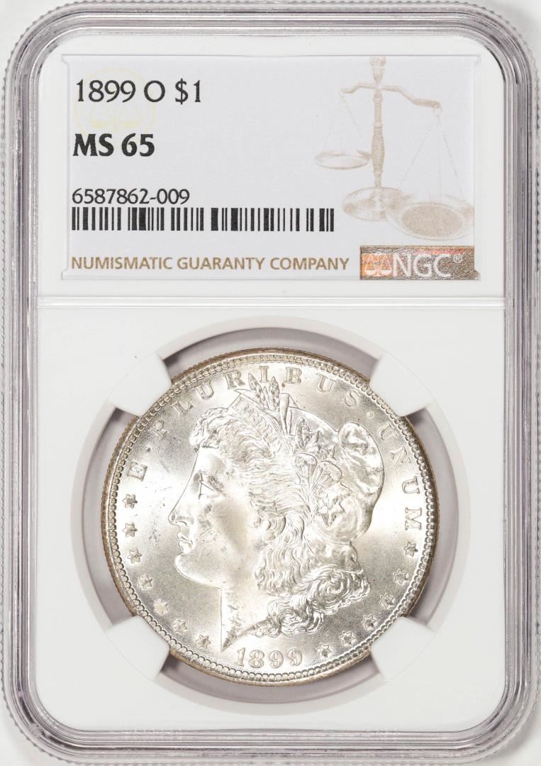 One 1899-O $1 Morgan Silver Dollar Coin NGC MS65. NGC Certified.