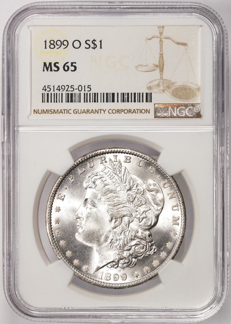 One 1899-O $1 Morgan Silver Dollar Coin NGC MS65. NGC Certified.