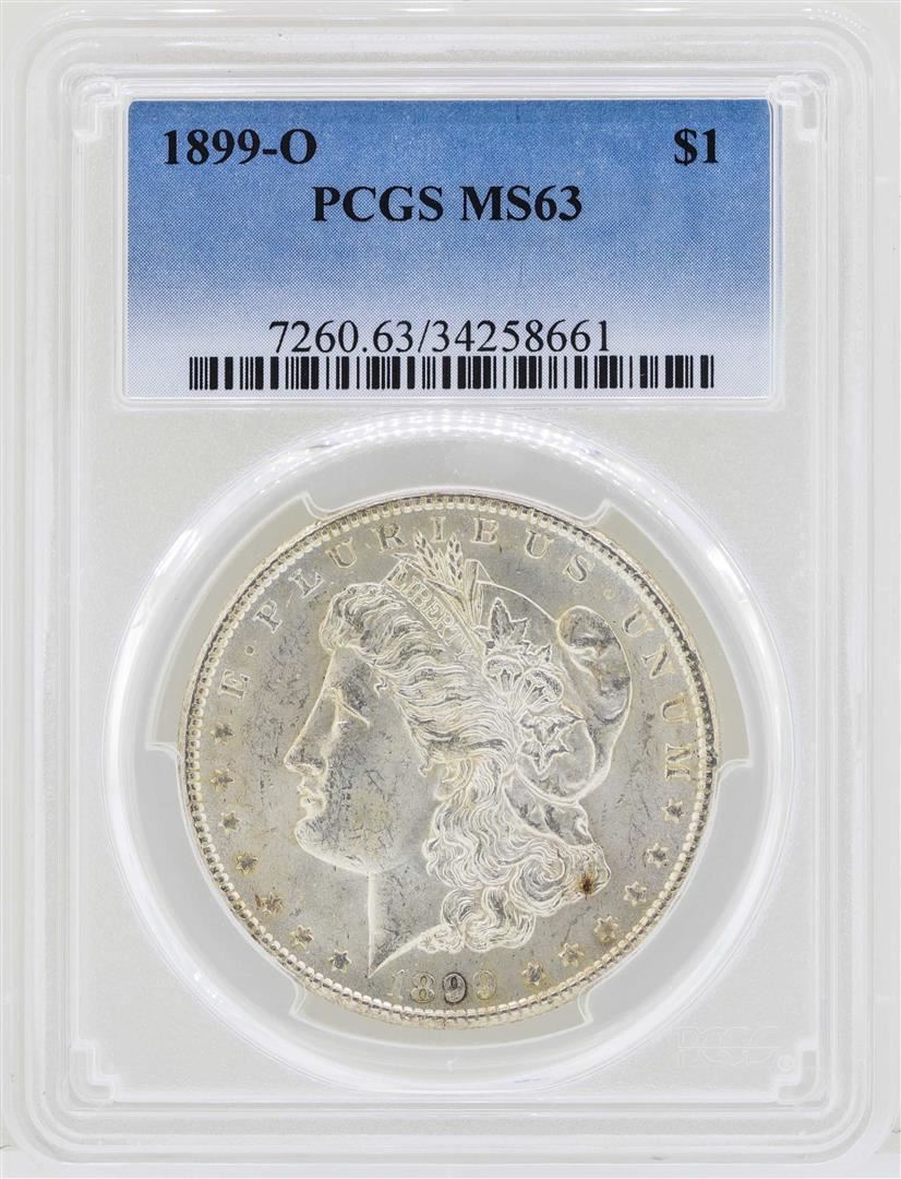 One 1899-O $1 Morgan Silver Dollar Coin PCGS MS63. PCGS Graded.