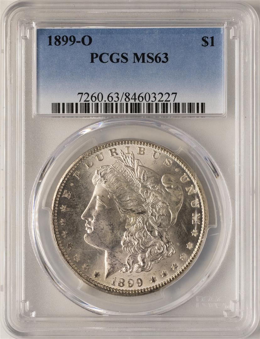 One 1899-O $1 Morgan Silver Dollar Coin PCGS MS63. PCGS Graded.