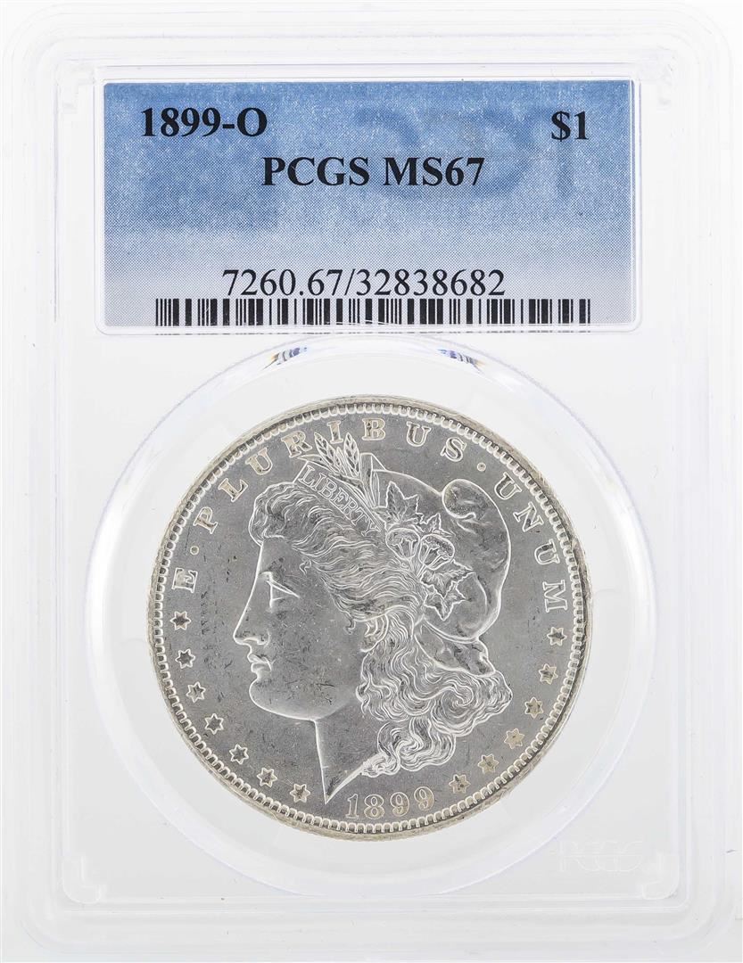One 1899-O $1 Morgan Silver Dollar Coin PCGS MS67. PCGS Graded.