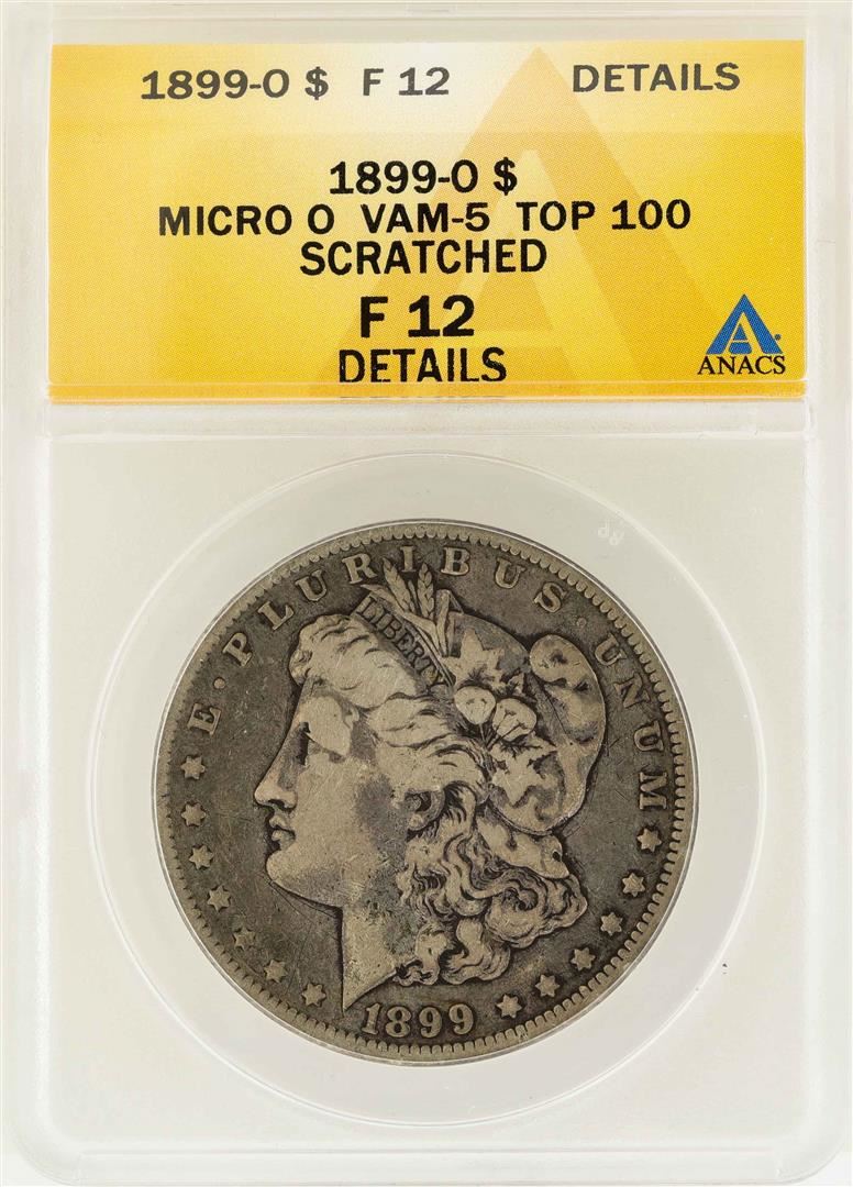One 1899-O $1 Morgan Silver Dollar Micro O VAM-5 Top 100 ANACS F12 Details. ANACS Certified.
