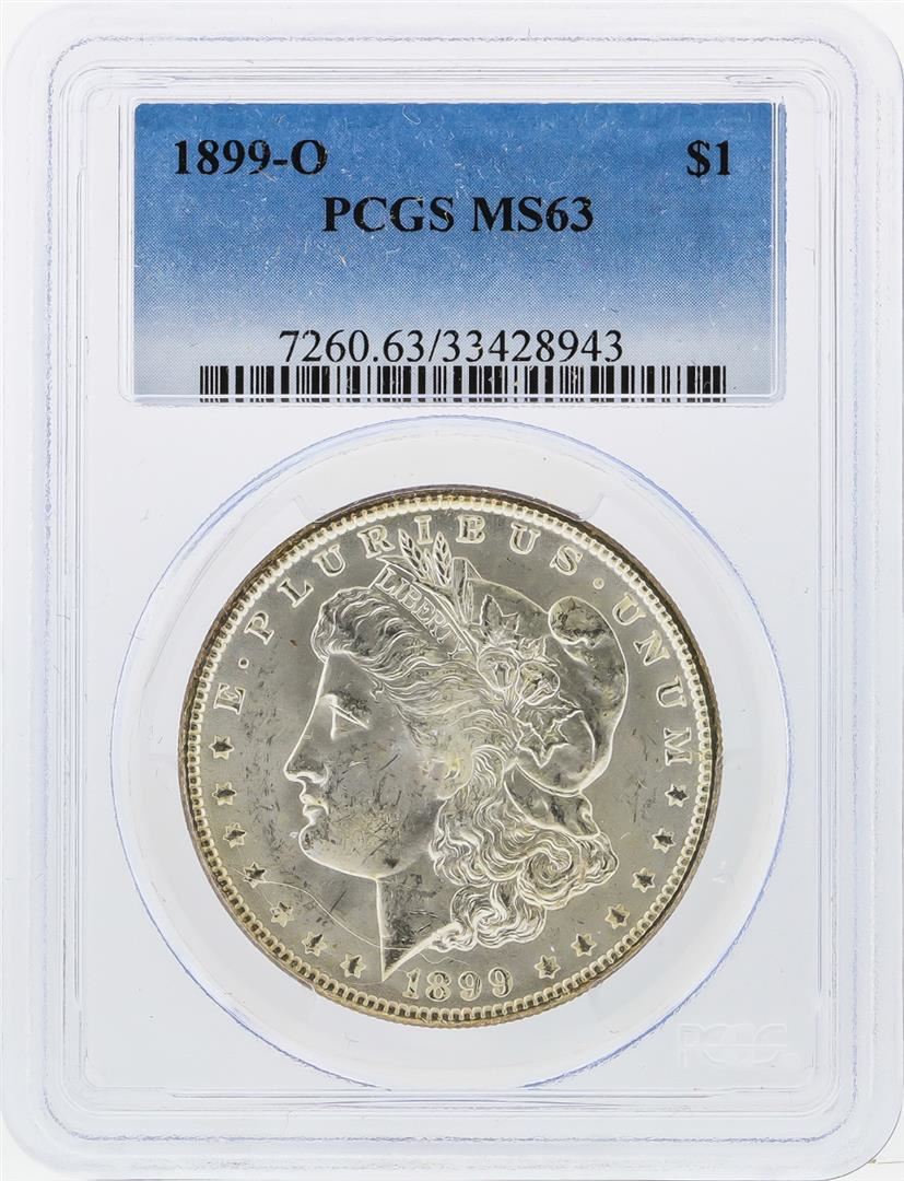 One 1899-O $1 Morgan Silver Dollar PCGS Graded MS63. PCGS Graded.