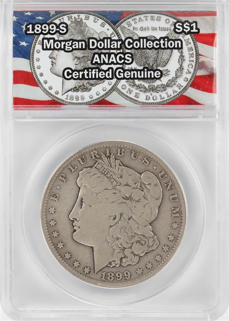 One 1899-S $1 Morgan Silver Dollar Coin ANACS Certified Genuine. ANACS Certified.