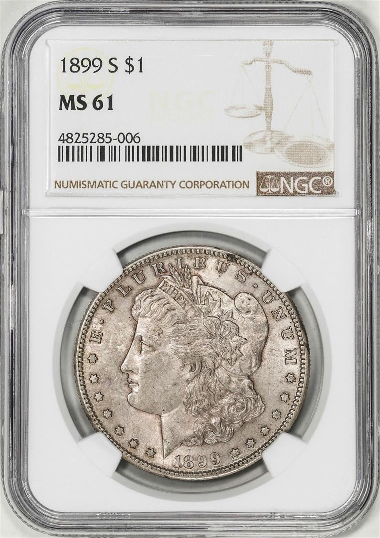 One 1899-S $1 Morgan Silver Dollar Coin NGC MS61. NGC Certified.