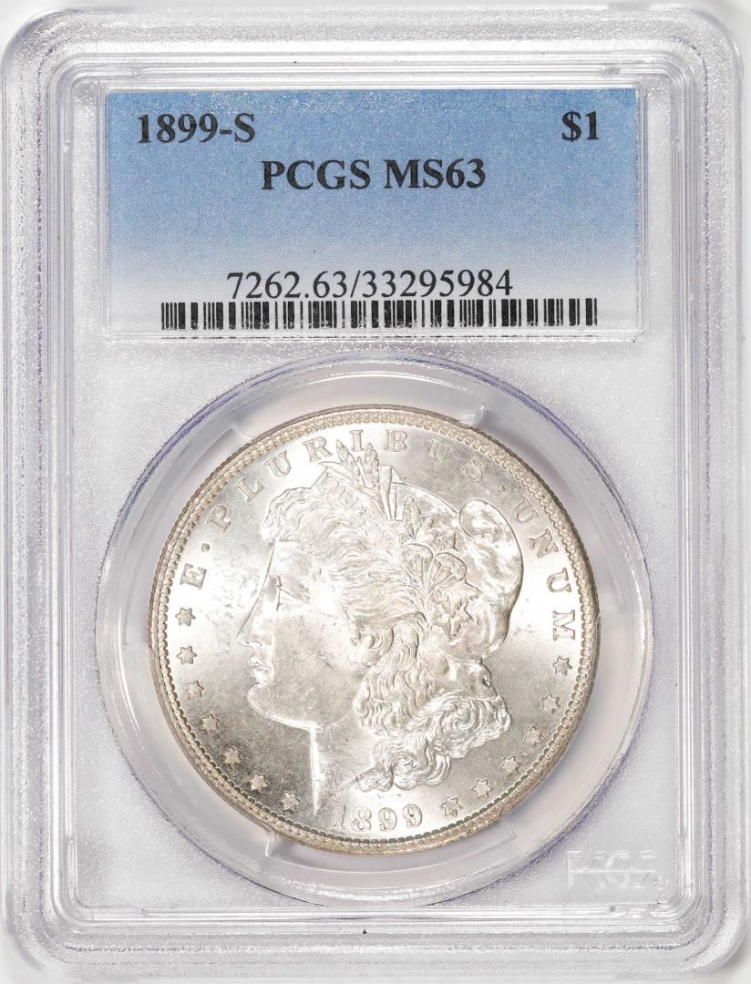 One 1899-S $1 Morgan Silver Dollar Coin PCGS MS63. PCGS Graded.