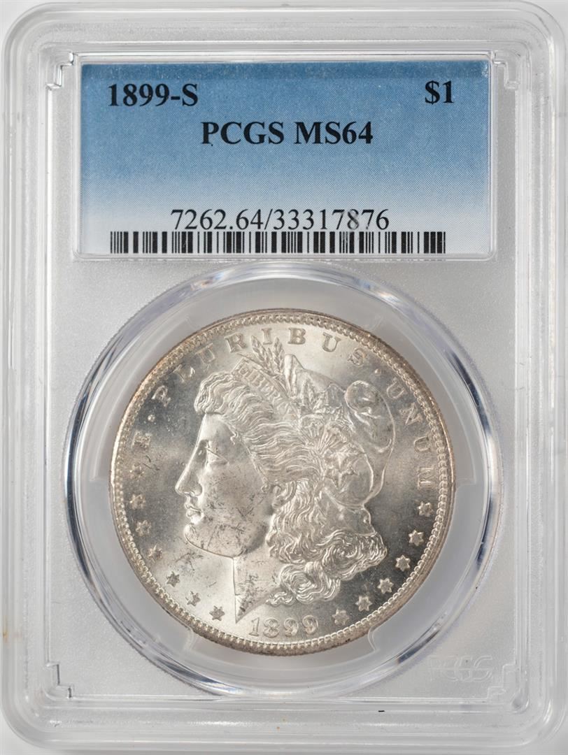 One 1899-S $1 Morgan Silver Dollar Coin PCGS MS64. PCGS Graded.