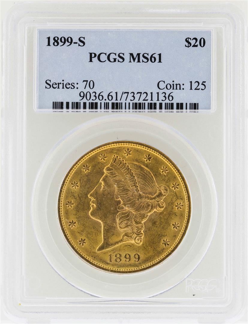 One 1899-S $20 Liberty Head Double Eagle Gold Coin PCGS MS61. PCGS Graded.