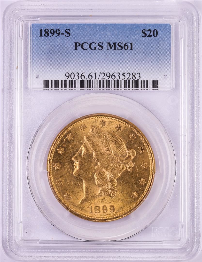 One 1899-S $20 Liberty Head Double Eagle Gold Coin PCGS MS61. PCGS Graded.