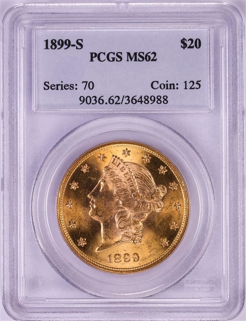 One 1899-S $20 Liberty Head Double Eagle Gold Coin PCGS MS62. PCGS Graded.