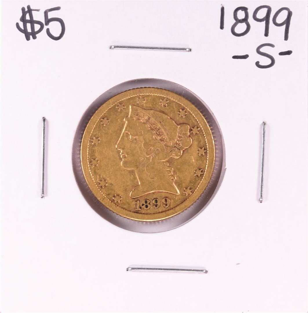 One 1899-S $5 Liberty Head Half Eagle Gold Coin.