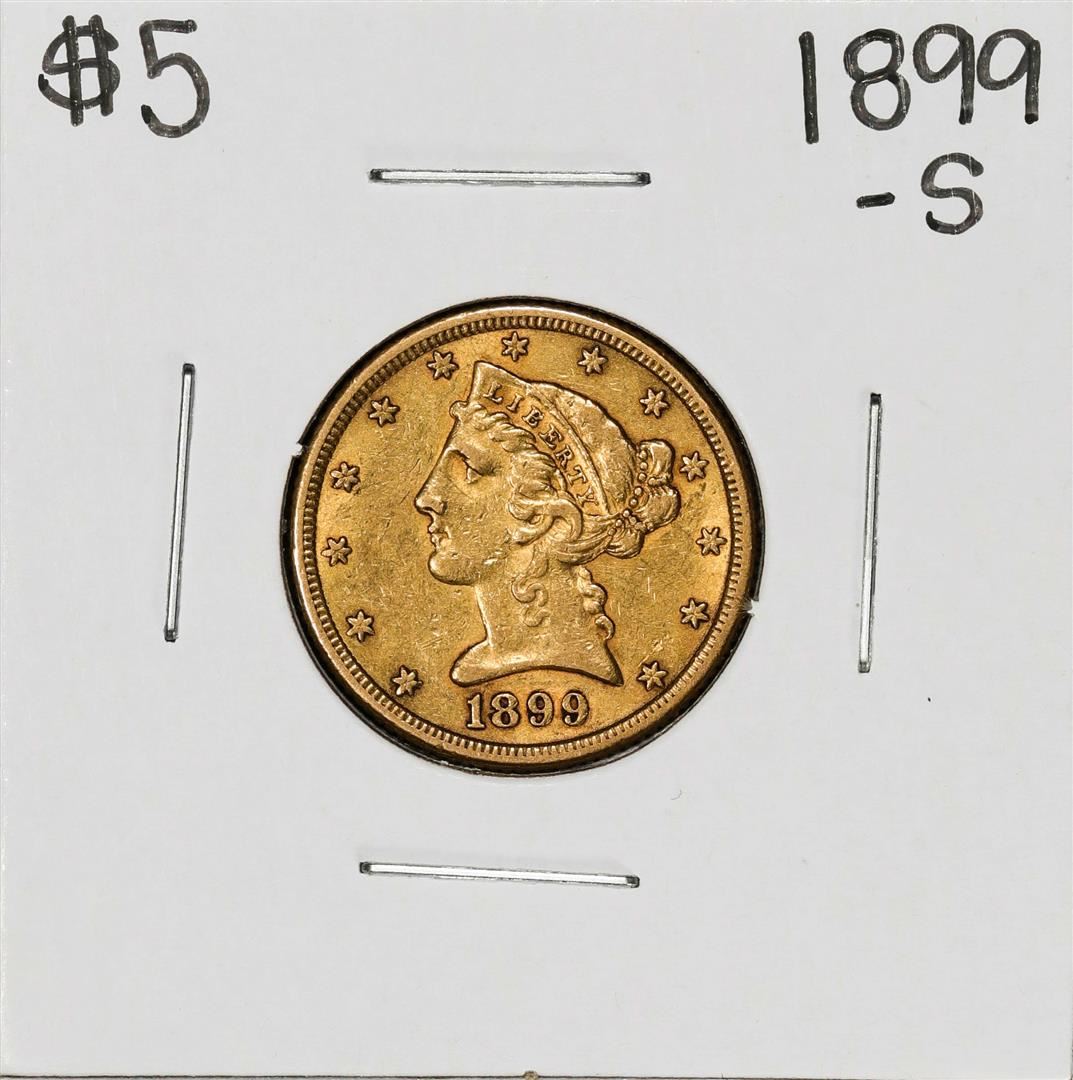 One 1899-S $5 Liberty Head Half Eagle Gold Coin.