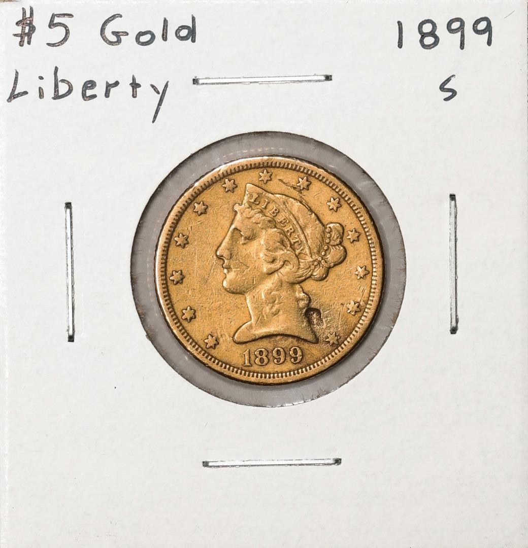 One 1899-S $5 Liberty Head Half Eagle Gold Coin.