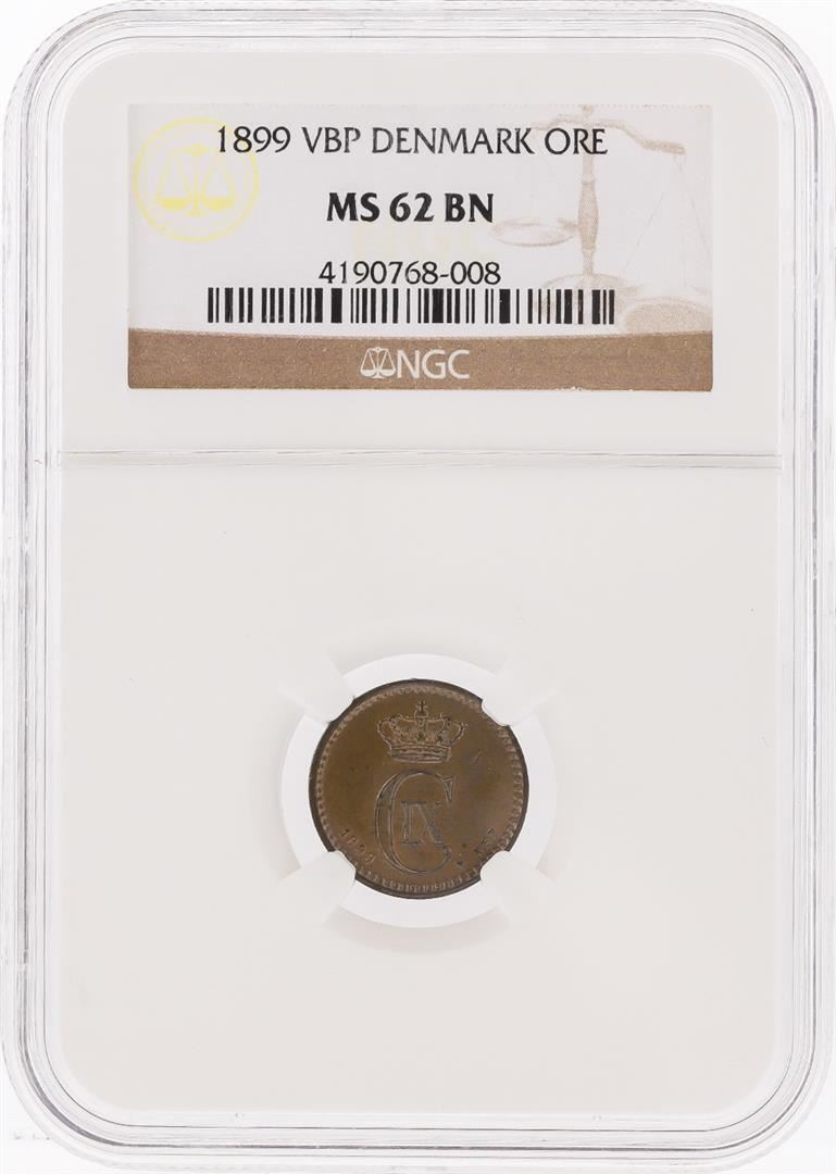 One 1899 VBP Denmark ORE Coin NGC Graded MS62 BN. NGC Certified.