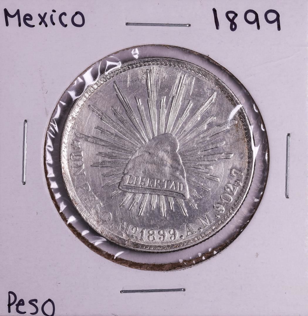 One 1899MO A.M. Mexico Peso Silver Coin.