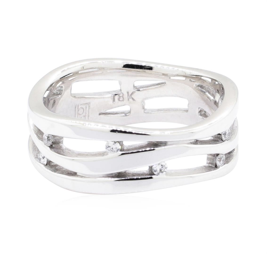 One wave ring featuring: 18KT white gold weighing 5.5 grams containing diamonds weighing 0.15ctw. The ring is a size 5.