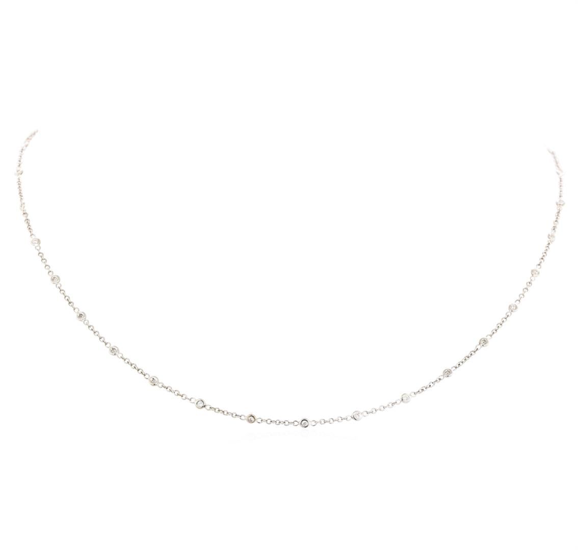 One diamonds by the yard necklace featuring: 18KT white gold weighing 3.7 grams containing diamonds weighing 0.50ctw. The necklace measures approximately eighteen inches in length.