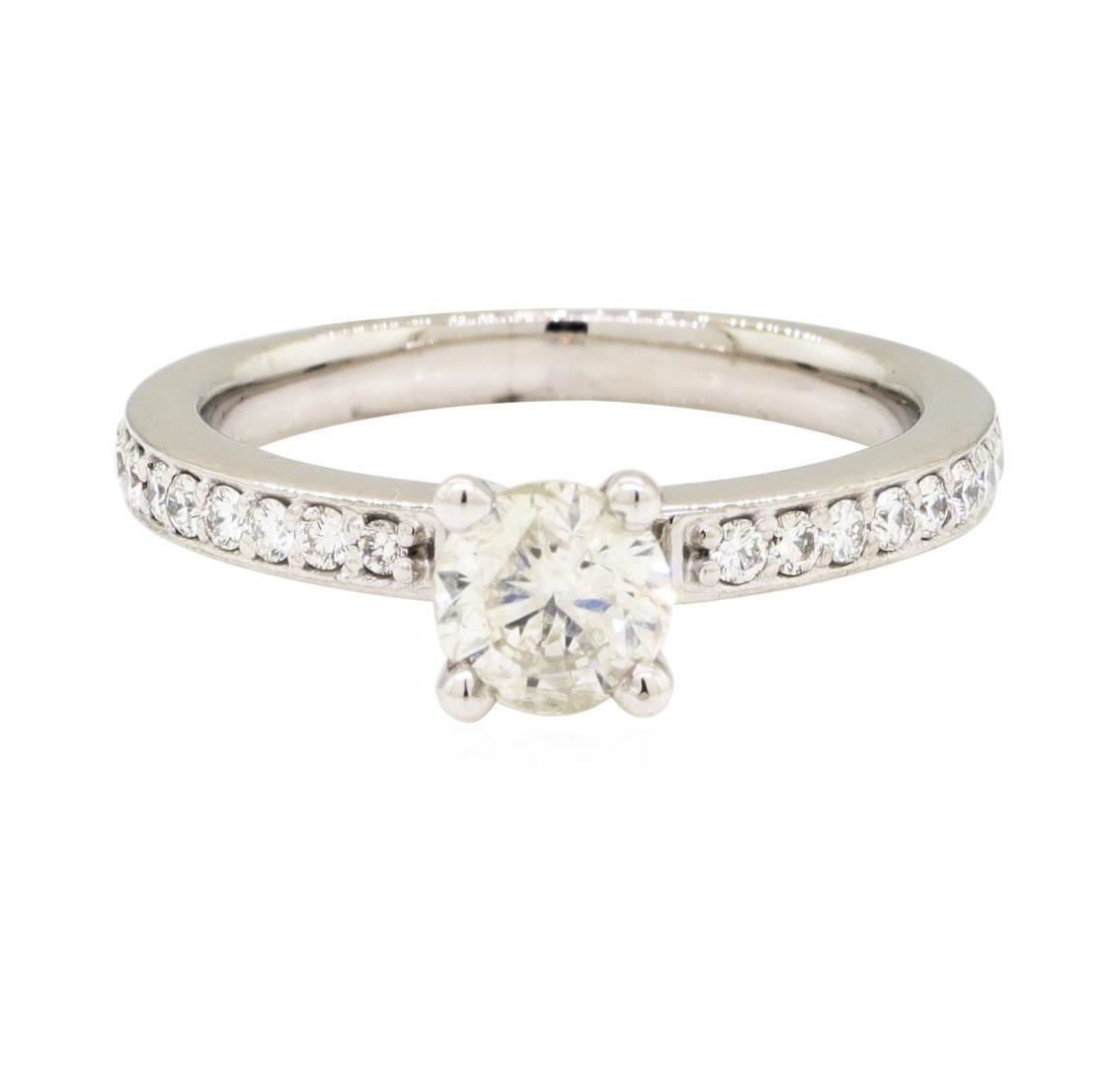One ring featuring: 18KT white gold weighing 3.1 grams containing one center diamond weighing 0.56ct and side diamonds weighing 0.30ctw. The ring is a size 5.