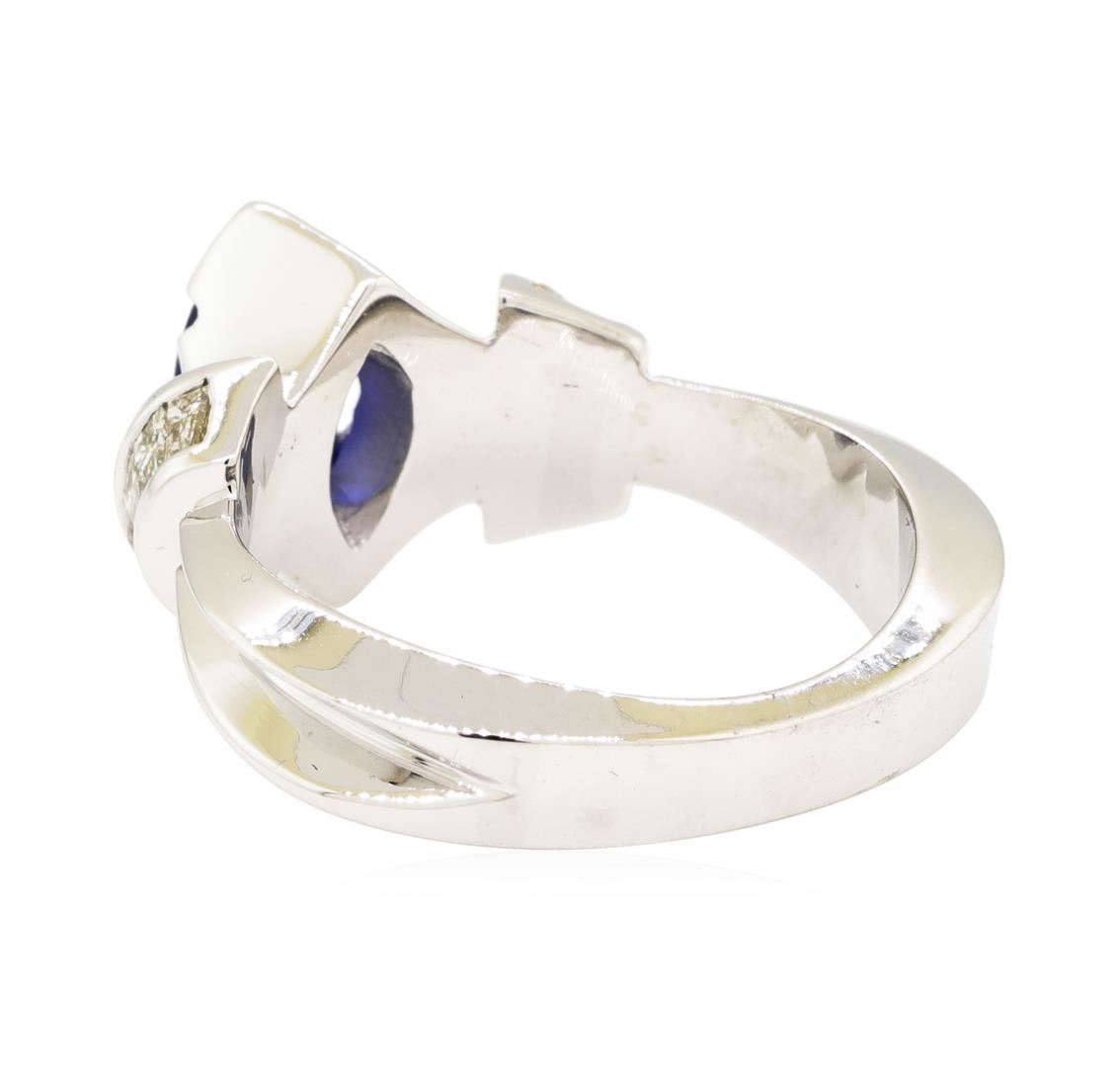 One ring featuring: 18KT white gold weighing 7.7 grams containing one sapphire weighing 1.10ct and diamonds weighing 0.30ctw. The ring is a size 6.