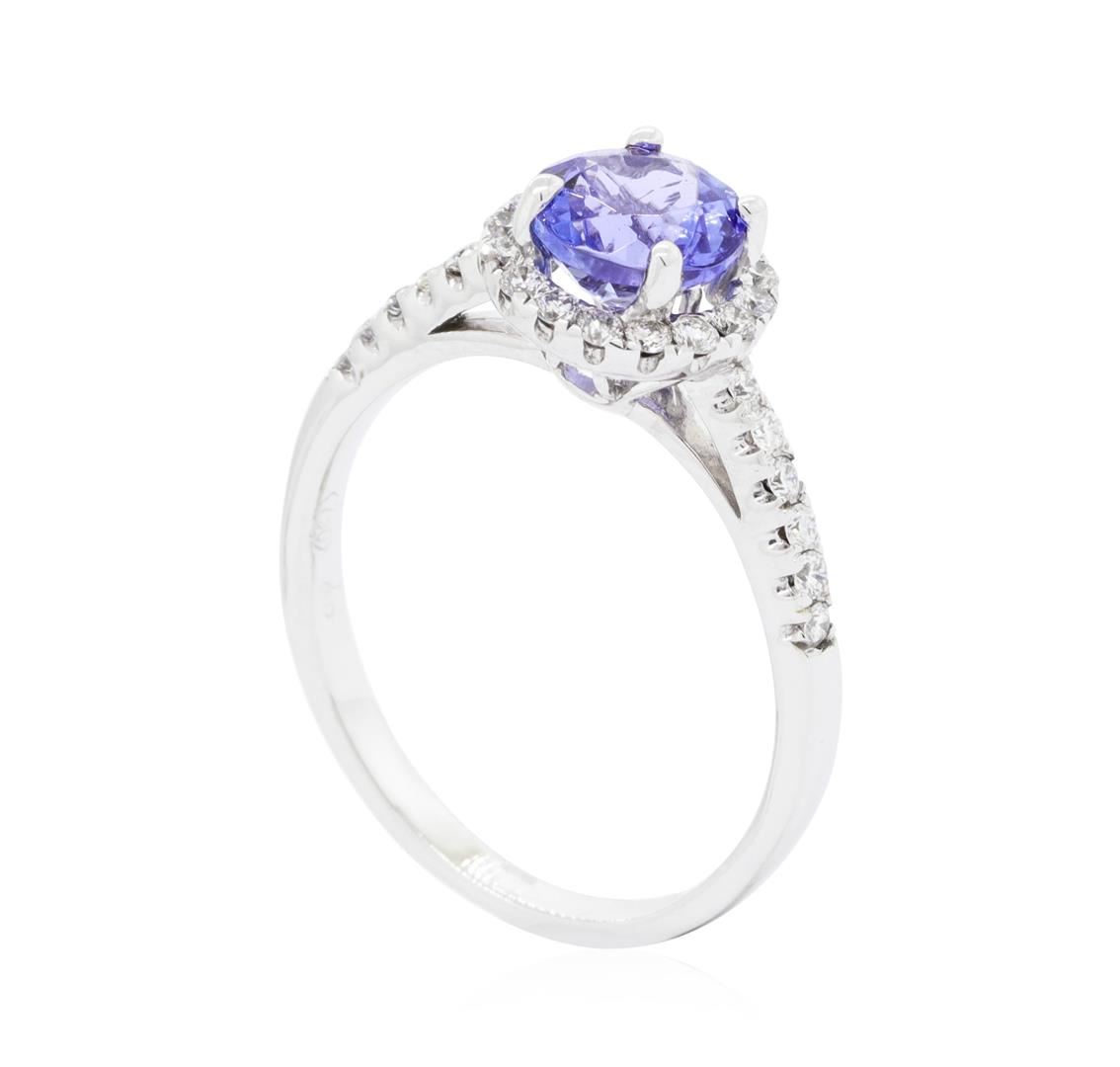 One ring featuring: 18KT white gold weighing 2.9 grams containing one tanzanite weighing 1.18ct and diamonds weighing 0.30ctw. The ring is a size 6.5.
