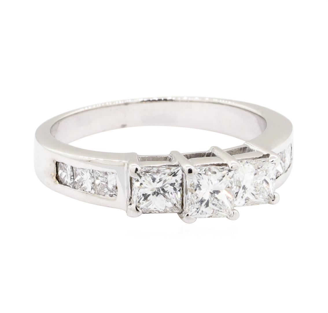 One electronically tested 18KT white gold lady's cast fashion ring with a straight line with a bright polish finish. The featured lady's ring has a shank measuring 2.38 millimeters wide. Identified with markings of '18K'. Condition is like new, good workmanship. Containing: One prong set princess cut diamond, measuring 3.96 x 3.90 x 2.90mm (depth est.) approximate weight of 0.37ct. Graded in the setting. Color H Clarity VS-2 Cut Very Good Two prong set princess cut diamonds, measuring 3.75 x 3.62 x 2.62mm (depth est.) approximate total weight of 2 Stones = 0.60ct. Graded in the setting. Color H - I Clarity VS-2 to SI-1 Cut Very Good Six channel set princess cut diamonds, measuring 2.20 x 2.00 x 1.50mm (depth est.) approximate total weight of 6 Stones = 0.33ct. Graded in the setting. Color H - I Clarity SI-1 to SI-2 Cut Good. Total Weight of Diamonds 1.30ct. Total Weight of Ring 3.80gm. GAS Appraised.