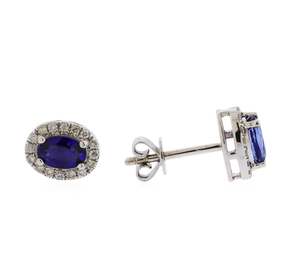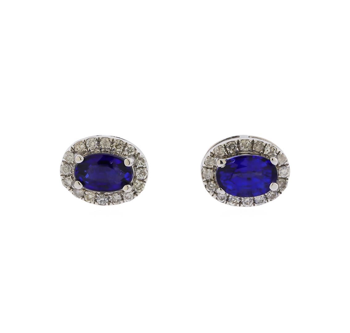 18KT White Gold 1.36ctw Blue Sapphire and Diamond Earrings