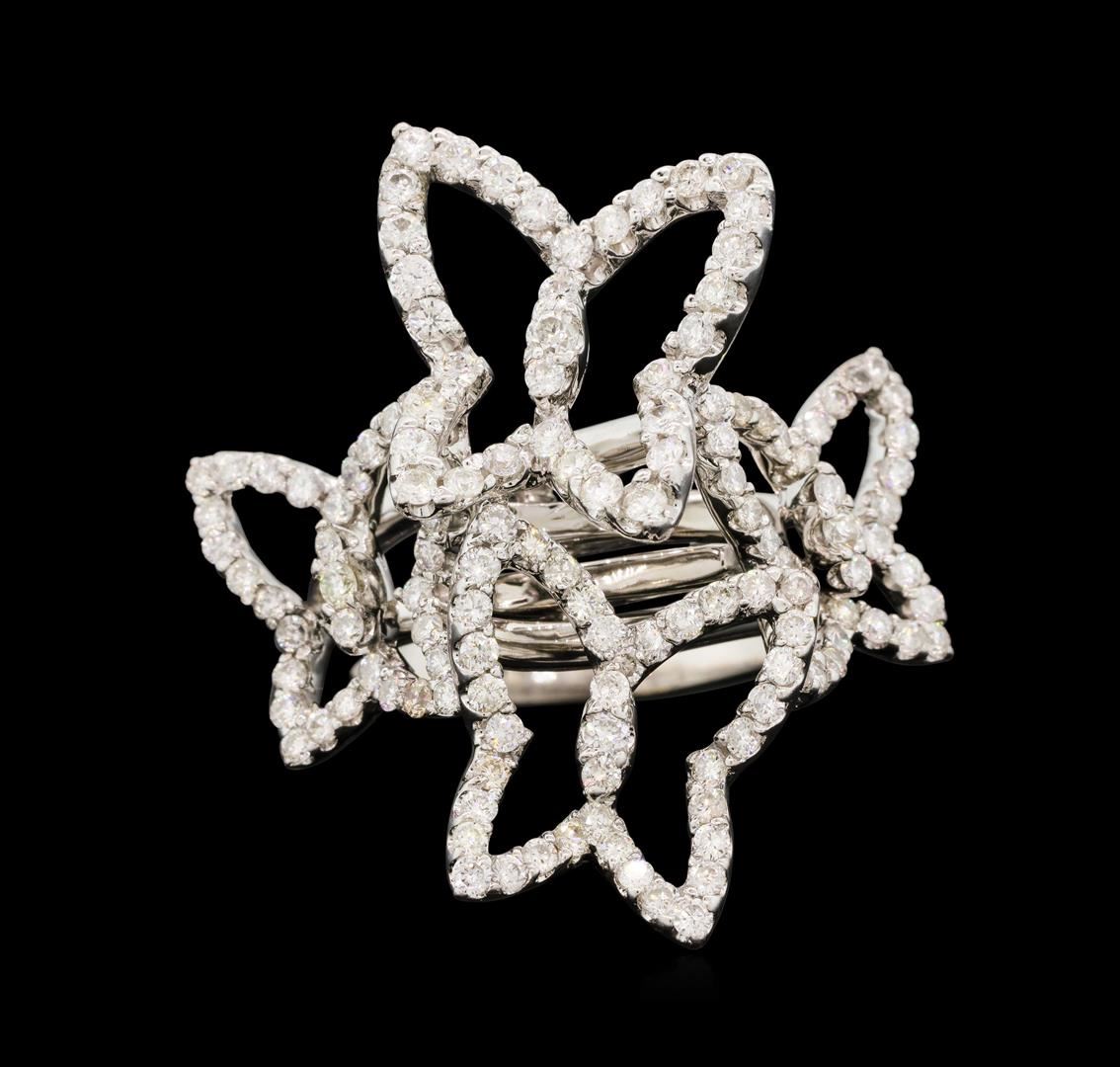 One electronically tested 18KT white gold lady's combination cast & assembled fashion ring with a tapered split shank with a bright polish finish. The featured lady's ring has four butterfly motifs and a shank measuring 3.10 millimeters wide. Identified with markings of "750". Condition is new, good workmanship. Containing: Four prong set round brilliant cut diamonds, measuring 2.00 - 1.80 x 1.18mm (depth est.) approximate. Total Weight of 4 Stones = 0.10ct. Graded in the setting. Color H - I Clarity SI-1 to SI-2 Cut Good One Hundred Thirty-Four prong set round brilliant cut diamonds, measuring 1.50 - 1.30 x 0.87mm (depth est.) approximate. Total Weight of 134 Stones = 1.40ct. Graded in the setting. Color H - I Clarity SI-1 to I-1 Cut Good. Total Weight of Diamonds 1.50ct.. Total Weight of Ring 10.50gm. GAS Appraised.