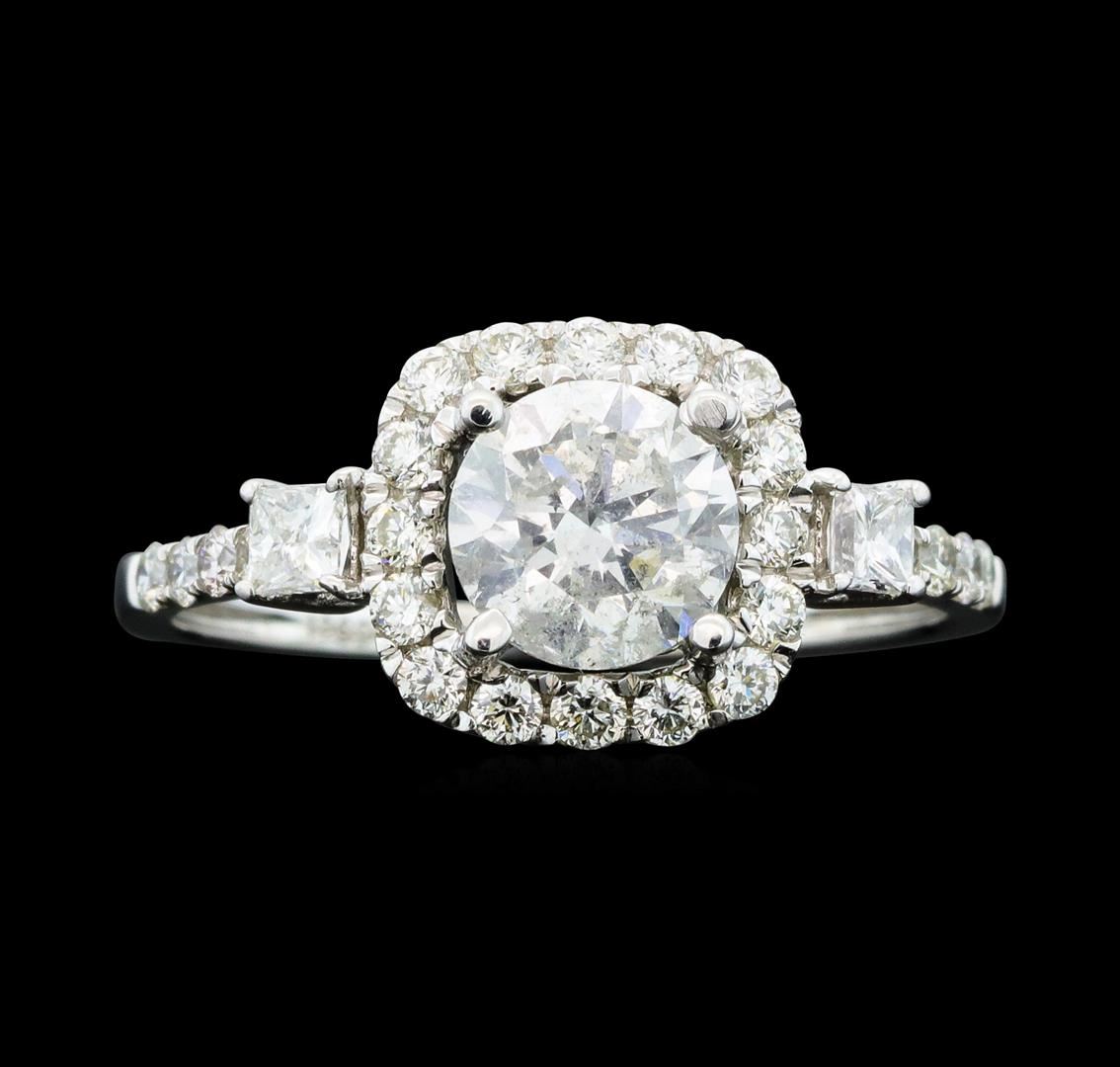 One electronically tested 18KT white gold ladies cast diamond unity ring with a bright polish finish. The featured diamond is set within an inner white gold basket and outer diamond bezel supported by mirroring diamond set shoulders, completed by a one millimeter wide band. Trademark is Orianne. Identified with markings of "18K". Condition is new, good workmanship. Containing: One prong set round brilliant cut diamond, measuring 6.41 - 6.38 x 3.97mm exact weight 1.04ct with a medium blue fluorescence. Graded loose prior to setting in the EGL Platinum Laboratory Report # 1562048329. Clarity: SI-3. Color: DDepth 62.0%. Table 60.0%. Pavil. Depth%. 43.0%. Two prong set princess cut diamonds approximate total weight of 2 Stones = 0.18ct. Graded in the setting. Clarity: SI-2. Color: E Twenty-Four prong set round brilliant cut diamonds approximate total weight of 24 Stones = 0.41ct. Color & clarity grade are an average for the group. Graded in the setting. Clarity: SI-1 to SI-2. Color: E - G. Total Weight of Diamonds 1.63ct. Total Weight of Ring 2.81gm. AIG Appraised.